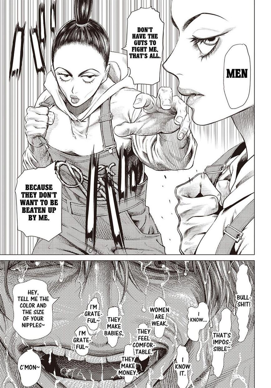 Reading that after the testosterone-loving manga Usogui, I was expecting the worst. But, there is some effort, and the strong female protagonists stay strong all through the manga instead of becoming damsel in distress halfway through like it happens too often, which is a nice surprise. Good job for someone who started his career drawing a one-shot for the masculinist title Baki!